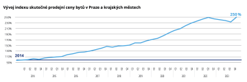 V Praze a krajských městech zdražily nemovitosti od roku 2014 o 150 %. To je takřka nejvíc v celé Evropě. Ani covidová pandemie, ani růst úroků trend neotočily. Přestože trh na konci roku 2022 a v první půlce roku 2023 výrazně zpomalil a bytů se prodávalo málo, ceny klesly maximálně o 10 až 15 % podle typu a lokality. V roce 2024 zatím pokračují v mírném růstu a je pravděpodobné, že se brzy dostanou na nová maxima.